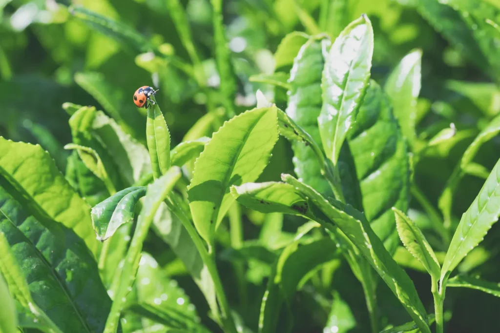 1点目は、育成工程で「茶木に覆いをかける」ことです。茶木に芽吹いた新芽に覆いをかけて日光を遮ることで、テアニン(うま味)を保持し、カテキン(渋み)を抑えるとされています。これによって抹茶本来の味わいが感じられます。
